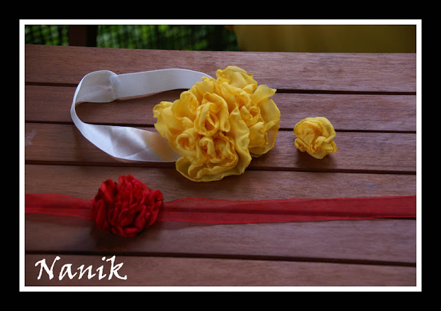 Po uszyciu spódnicy zostało mi trochę szyfonowych ścinków o tak słonecznym odcieniu, że trudno mi było się mu oprzeć. Wzięłam więc nożyczki, świeczkę (pachnącą, więc przynajmniej komary trzymały się z daleka), rozsiadłam się na balkonie i wycinałam ze ścinków, co się dało. Niekoniecznie kółka.